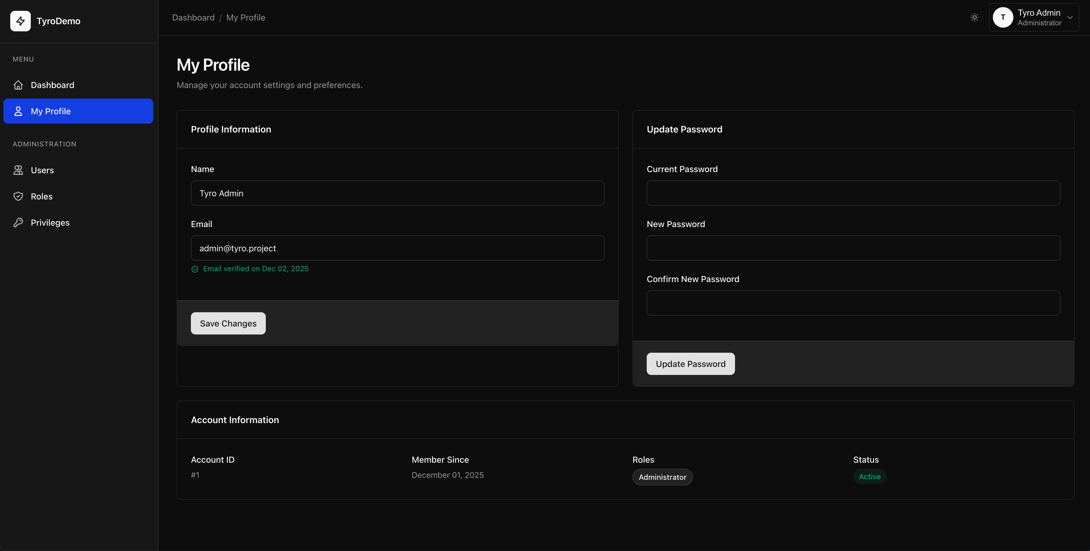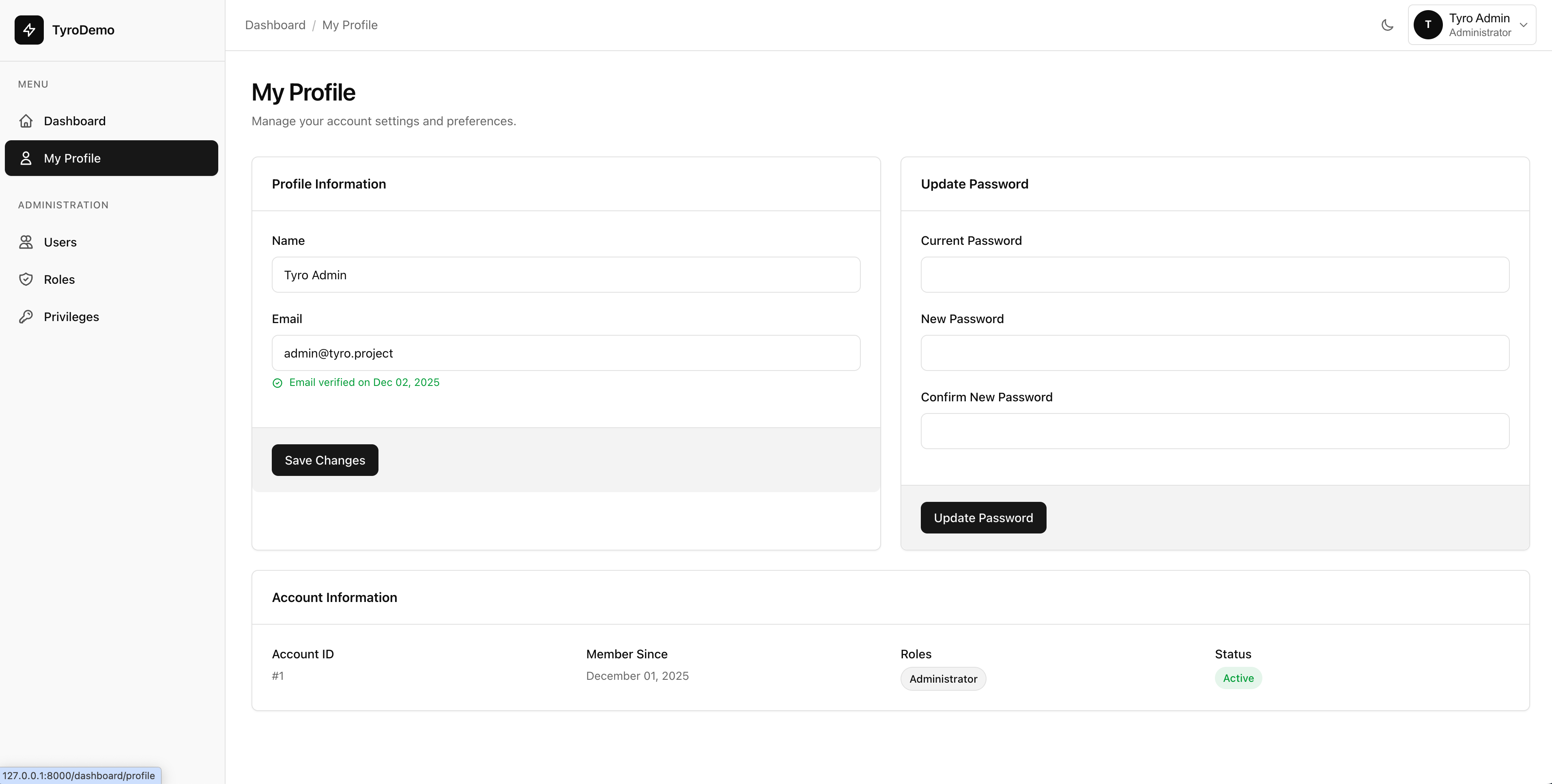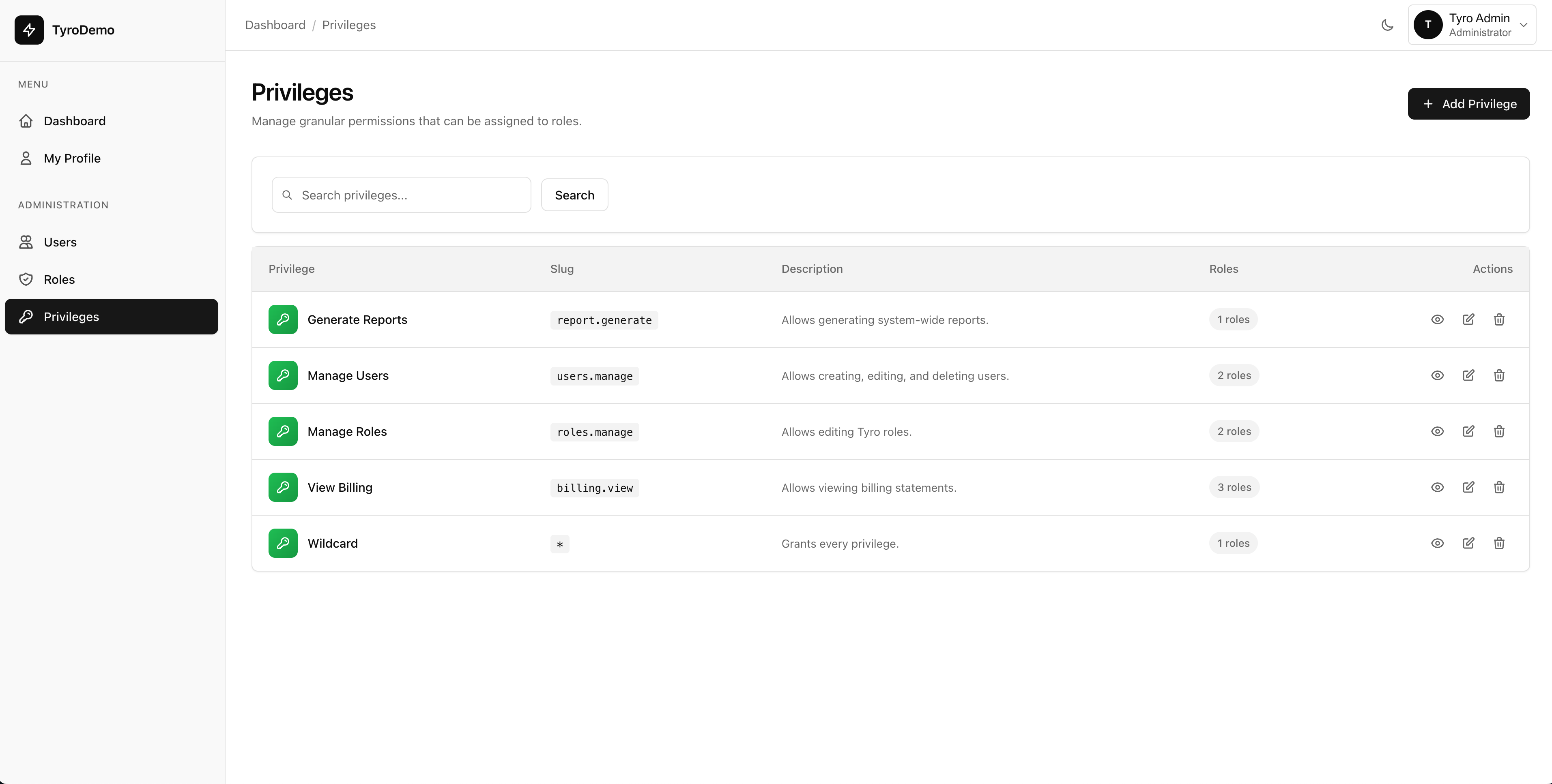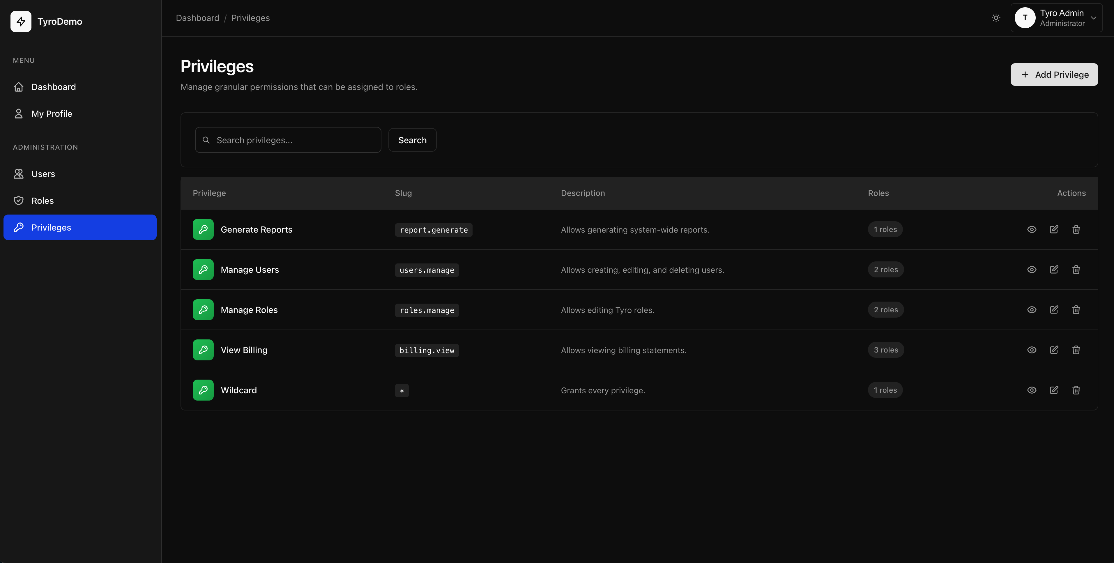 Everything you need to build a beautiful admin dashboard for managing Tyro roles, privileges, users, and package settings in Laravel 12.